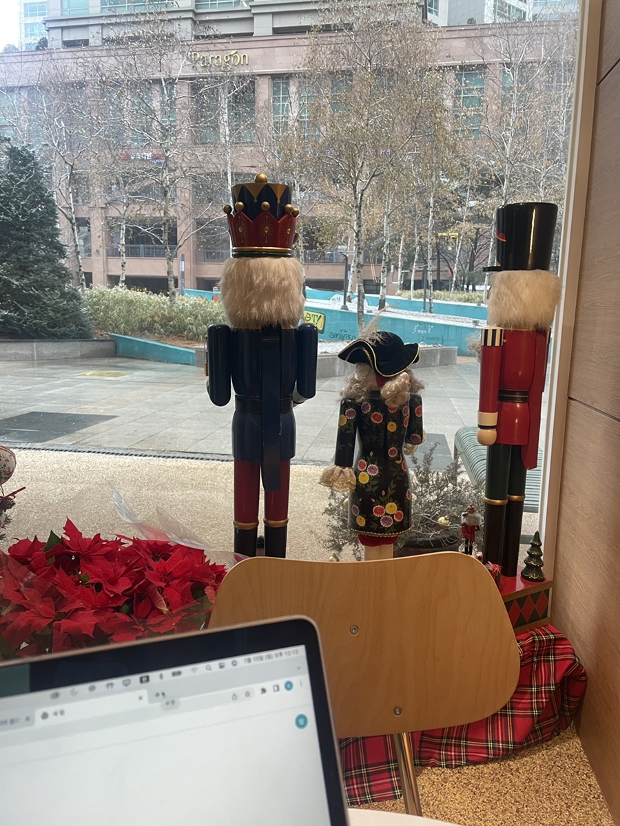 저는 크리스마스 장병들이 있는 창가에 앉아보았습니다 ㅎㅎ
