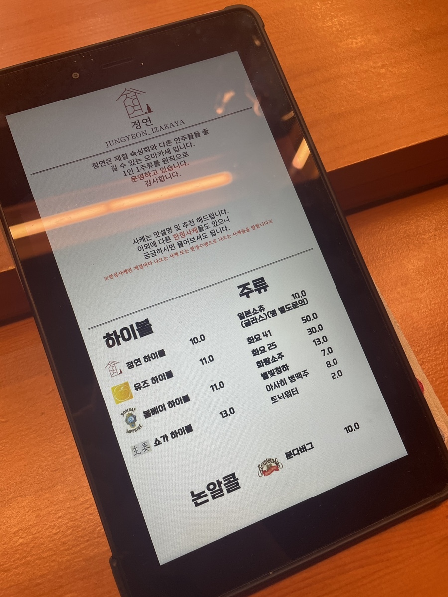 주류 메뉴판을 이렇게 테블릿으로 주십니다!