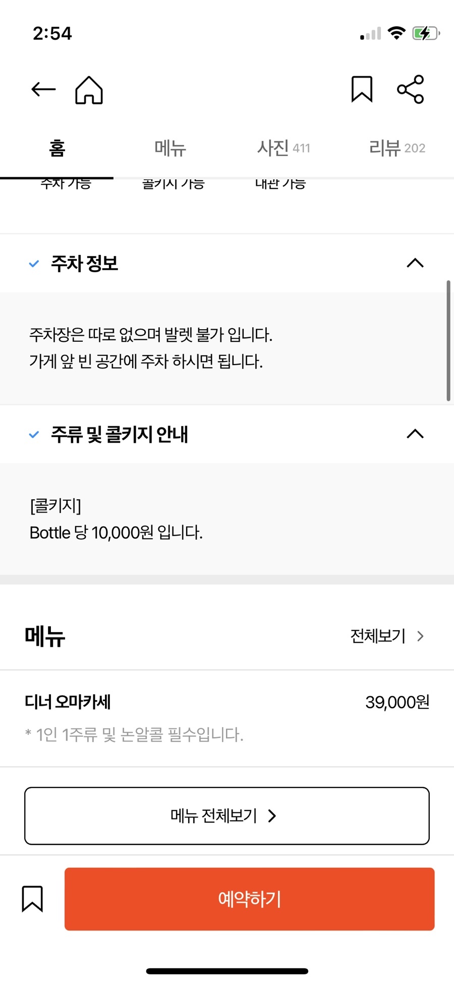 콜키지는 한병에 만원으로 매우 저렴하더라구요!