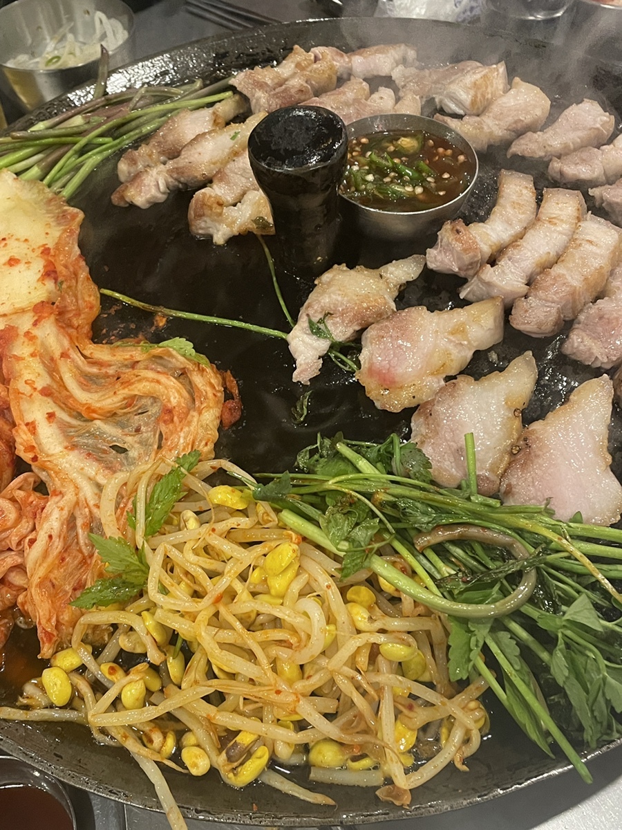 문득 이 밑반찬들도 다 고기와 구워먹는 이 한국의 문화가