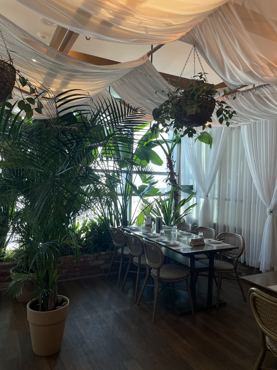이곳에도 초록색 큰 식물들이 가득하고 의자가 라탄으로 이루어져있어서