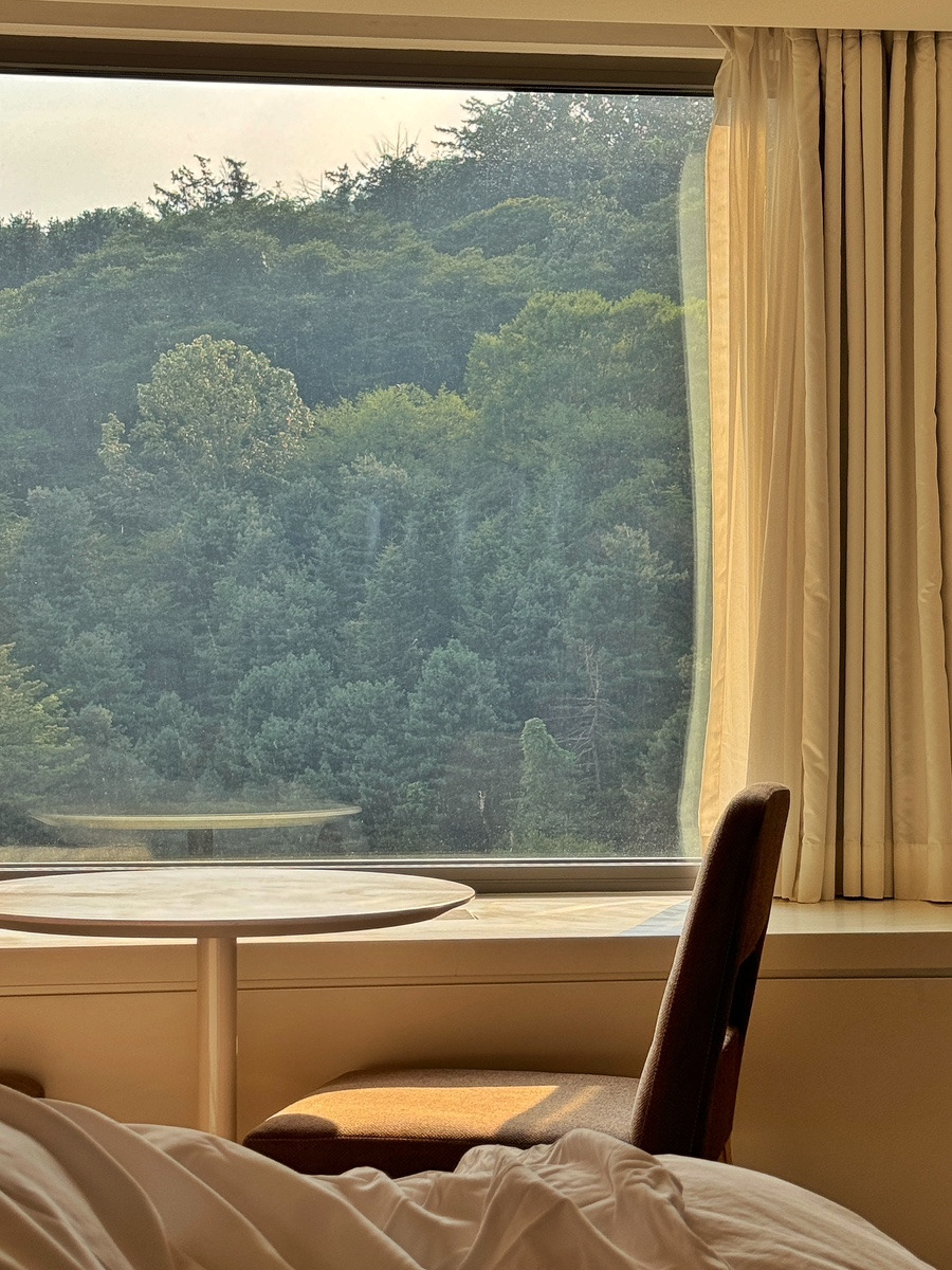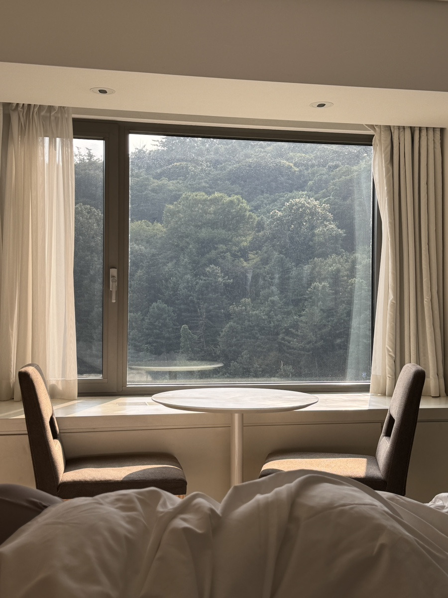 침대에서 보몀 그냥 산만 보였습니당