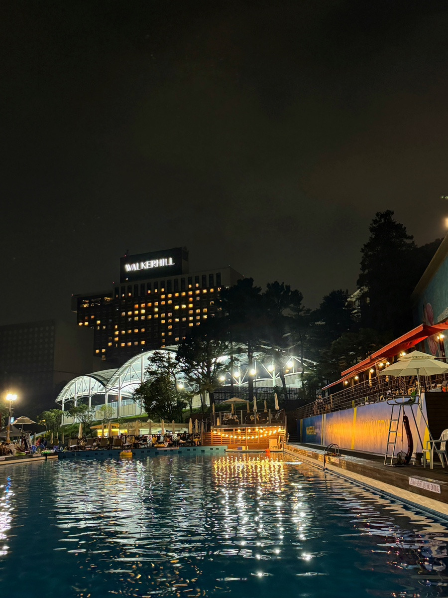 밤이 되면 이렇게 수영장에